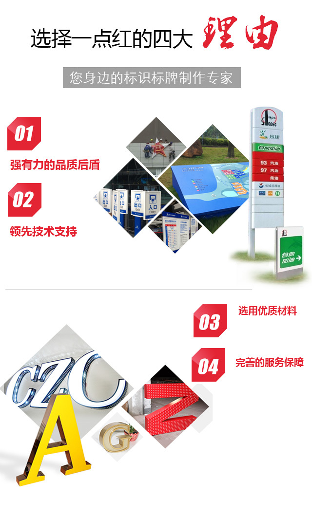 广西南宁市一点红装饰工艺制作有限公司是一家专注从事现代标识业,集方案解决、生产制作、销售服务为一体的标识企业,是广西标识行业协会常务副会长单位,公司20年来一直致力于公共空间信息传达领域(空间导视(示)系统设计),通过后期的资源整合还原设计。公司作为功能性导向标识行业的佼佼者,自身拥有一支优秀的策划设计团队,结合欧洲设计理念,综合实际,将个性和艺术相结合,力求产品与环境完美融合,有效传达信息,成为各类机构的最佳导向。公司作为广西地区成立较早的标识行业制作机构,多年来凭借精心的策划、创意、执行工作,赢得了客户及业内合作伙伴的信赖和认可,在业界享有良好声誉。公司拥有的先进生产设备、生产厂房和专业人才,为生产出美观、舒适、高端大气的产品提供强有力的保障,为各类客户提供全程无忧的服务。 |